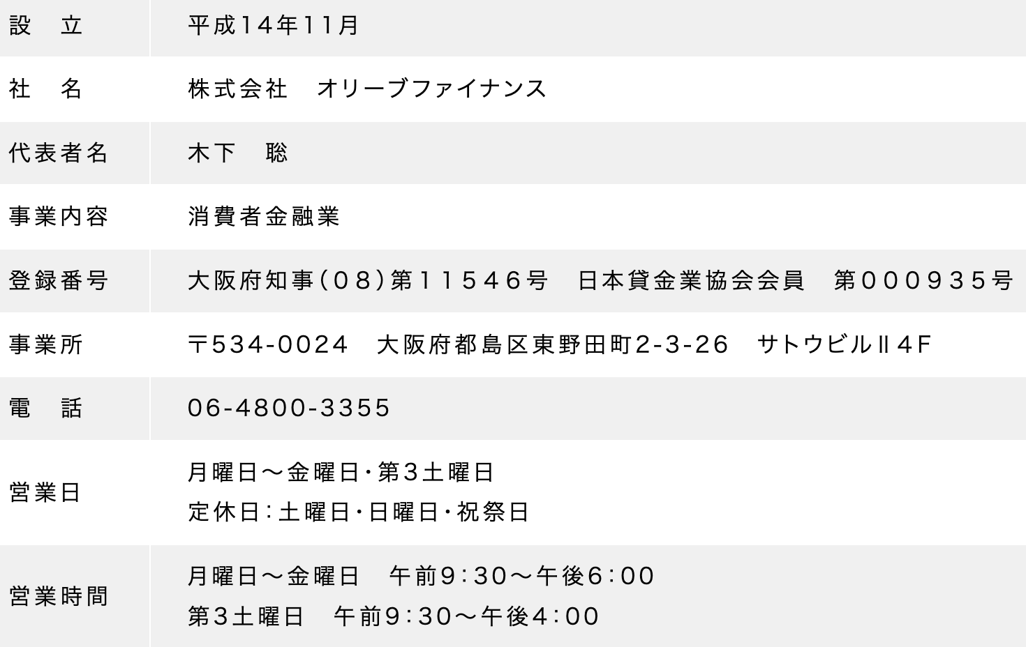 まず、オリーヴファイナンス(公式サイト)によると、同社は金融庁登録済みの正規街金(消費者金融)です。